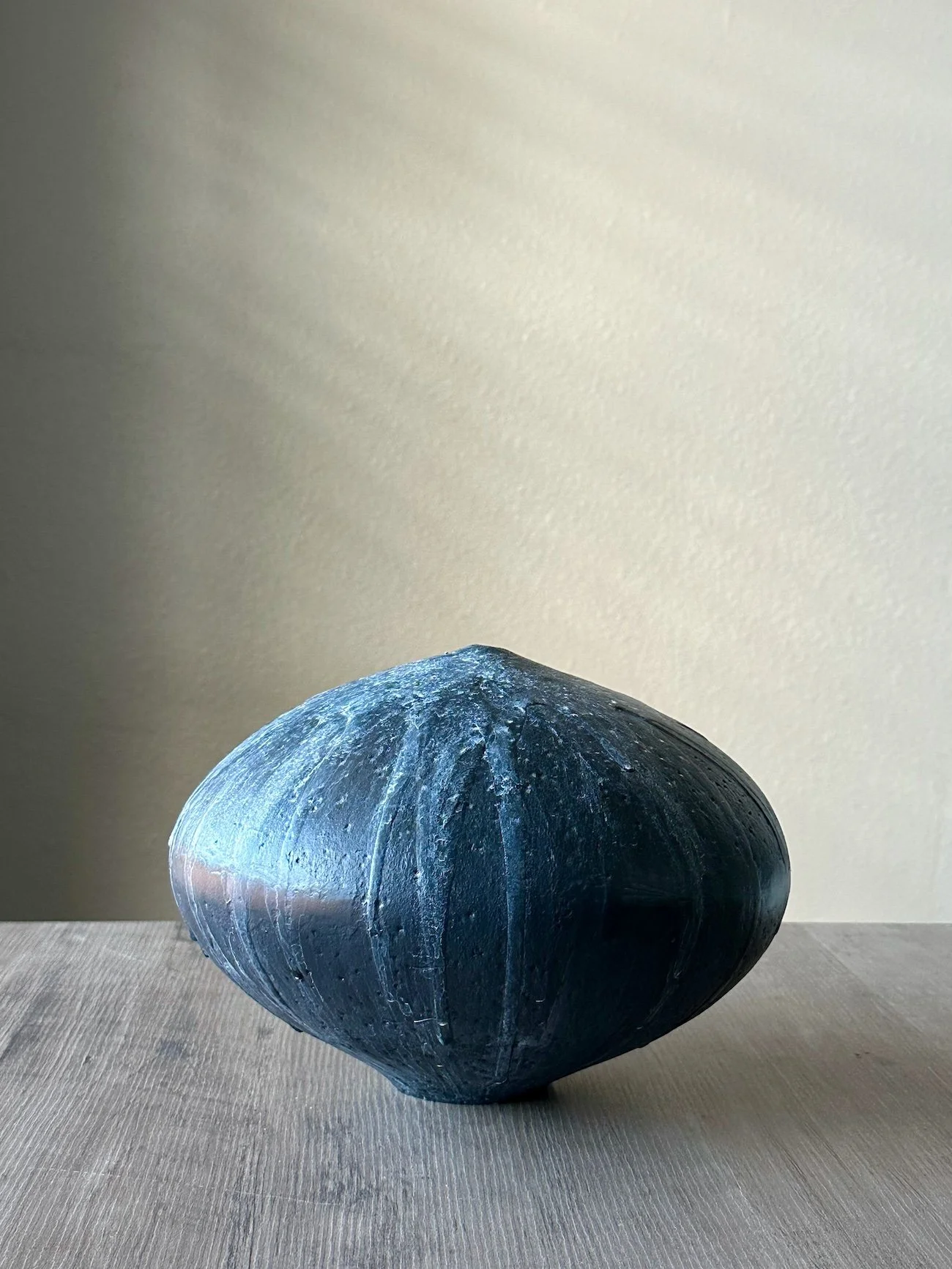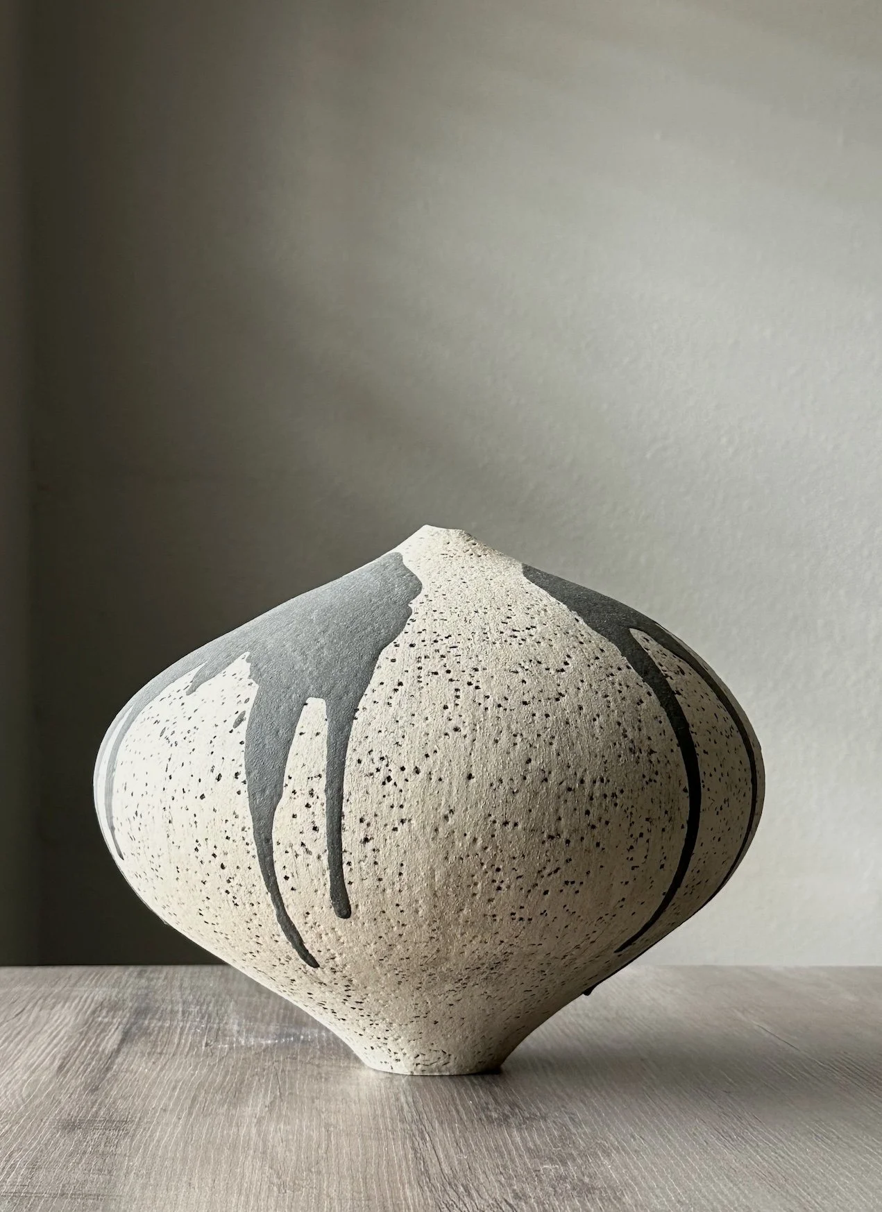 Untitled bulb vessel #1. Hand built stoneware with engobe and glaze. Height 7 in. Diameter 9 in.